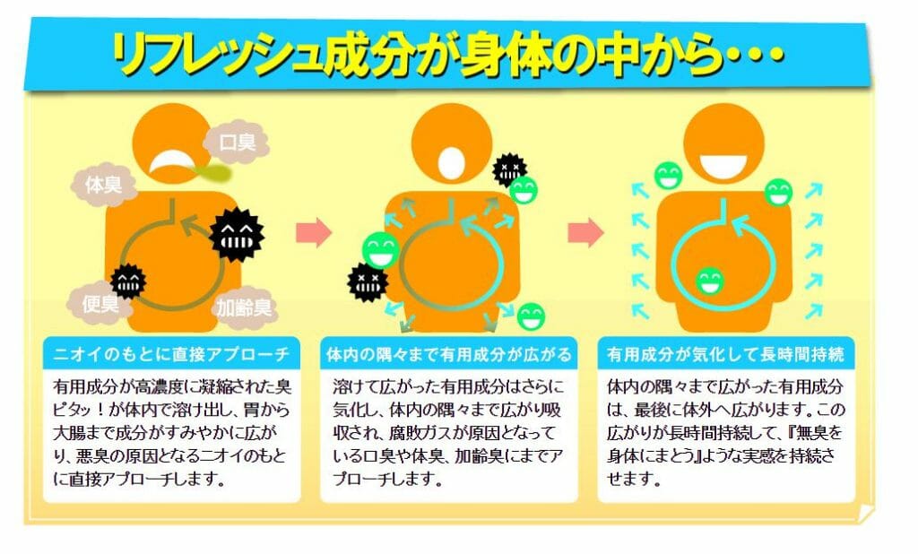 そうなる前に、予め消臭サプリを日常的に飲むことで気持ちが楽になるだろう。